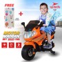 Dengan mainan motor ini aman digunakan untuk anak-anak. Dilengkapi dengan roda penyeimbang kanan dan kiri, memiliki lampu pada bagian depan, dilengkapi dengan pedal injak maju dan mundur.