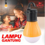 Lampu camping yang berbentuk bohlam menggunakan baterai ukuran A3 sebanyak 3 buah. Dapat digunakan sebagai senter tangan dengan 3 mode pencahayaan.