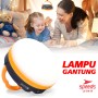 Lampu Tenda Model Bakpao ini memiliki magnet yang memiliki fungsi untuk menempelkan lampu ke media besi, jadi anda tidak perlu ribet mengikat.